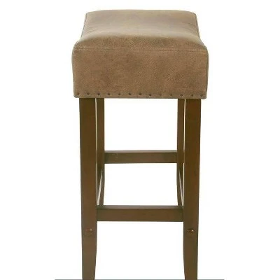 Create a cozy spot for hanging out in your home with the Rumford Saddle Counter Stool from Threshold™. Made from durable hardwood, this upholstered counter stool with nail head trim will bring desired comfort and timeless style when lined up along your kitchen counter. Thanks to the padded seat, foot levers and stretcher-foot rest bar, this counter stool will make a practical addition to any home. Easy to maintain, this counter stool supports up to 250 pounds.