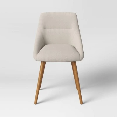 Make your dining setup a style affair by adding this 2-Pack Timo Dining Chair from Threshold™. Set on a base of four natural wood-tone, tapered legs, this pack of armless dining chairs makes a functional addition to your space. The solid-color upholstery lends textured appeal you’ll love. Place these upholstered dining chairs around the table to complete your dining setting in an elegant style.