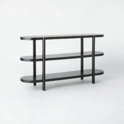 Declutter your space and display your favorite books in style with this Portola Hills 3-Shelf Horizontal Bookcase from Threshold™ designed with Studio McGee. This wooden bookshelf features an airy design with three oblong shelves for organizing all your cherished hardbounds, classic novels, contemporary bestsellers and magazines, as well as potted plants, collected curios or framed photos. In a wooden finish, this three-tier bookshelf instantly elevates your room decor.