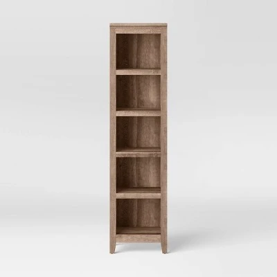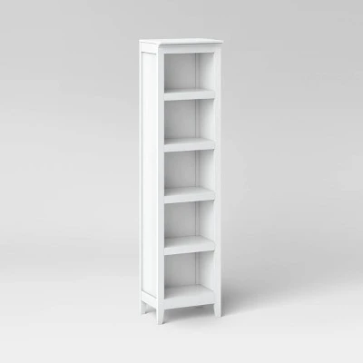 Add timeless style to any room with the Carson Narrow Bookcase from Threshold™. This narrow bookshelf has clean lines and a traditional style that easily mixes with your existing decor. Use in a nursery to display milestone photos and baby books or in a living room to create a space for plants and accent pieces. The mix of fixed and adjustable shelves let you customize it to your needs. with narrow design this bookcase is easy to add to smaller spaces in your home.
