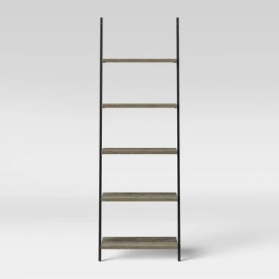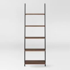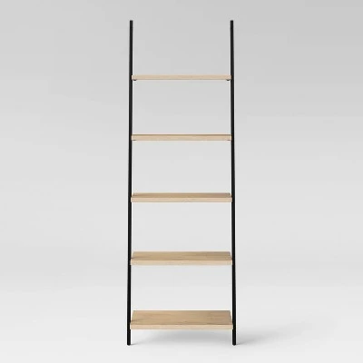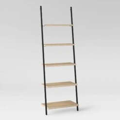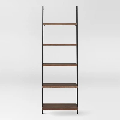 The Loring Five-Shelf Leaning Bookcase from Threshold™ will add a casual yet refined look to your home office or study. This easy storage solution takes up very little floor space, while the five open shelves offer the perfect display shelf for books, picture frames and more. Just lean it against the wall and display away.