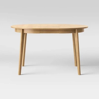 Create a dining space to match your home’s charm and character with the Astrid Mid-Century Round Dining Table with Extension Leaf from Threshold™. A wood finish gives this piece natural warmth and texture, while the tapered legs add a distinct mid-century modern appeal. Just as functional as it is stylish, this dining table also has an extension leaf that transforms the shape from circular to oval, giving you the extra space you need for family dinners or entertaining friends.