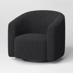 Accent your home with the soft style of this Aveline Large Scale Faux Shearling Swivel Chair from Threshold™. Dressed in chic faux-shearling textured upholstery, this barrel-style accent chair looks at home in an array of styles, while the cushioning elevates the sitting experience with padded comfort. Plus, it swivels on a round metal base for versatility. Whether you use it in your bedroom or place it in a corner to create a reading nook, this upholstered chair adds a comfy seating spot with a dash of statement style.