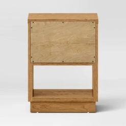 Give your living space an instant upgrade with this Bourne Accent Table from Threshold™. This wooden accent table strikes a clean-lined silhouette in a natural finish that easily complements complement a wide range of design aesthetics and color palettes. The rectangular tabletop and lower shelf are perfect for small vases, framed photographs and other decor accents, while multiple drawers provide you space to stash TV remotes, coasters and other daily essentials. Whether you place it next to a couch or between two sofas, this wooden accent table makes a functional and stylish pick.