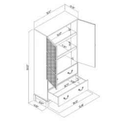 - Features multiple shelves and drawers