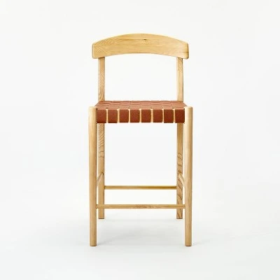 Add a simple yet standout look to your kitchen or bar counter with this Cliff Haven Solid Wood with Woven Seat Counter Height Barstool from Threshold™ designed with Studio McGee. Set on a wooden frame with clean lines and a natural finish, this counter-height barstool features an arch-shape back and faux-leather woven seat in a rustic shade to complement the look. It stands at a fixed height of 24 inches to make it perfect for your space. Designed to mix with a wide variety of decor styles, this armless barstool also features a footrest for added convenience.