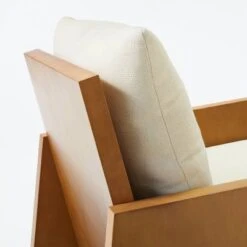 Update your seating collection with the simple yet sophisticated style of this Duchesne Wood Accent Chair with Upholstered Seat and Back from Threshold™ designed with Studio McGee. Made with wooden frame, this accent chair comes upholstered with a textured fabric for added comfort and style. The cream upholstery complements the brown wooden frame for a modern appeal that suits a wide variety of decor styles. Use this cream accent chair in your living room, study area or any other space and add a ceramic table nearby to complete the look and keep your essentials within reach.