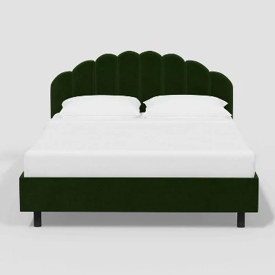 Bring a touch of modern, sophisticated flair to your sleeping nook with this Emma Platform Bed from Threshold™. This upholstered bed features a pinewood platform frame with a slatted design that supports your mattress without the need for a box spring, and the soft velvet upholstered headboard is adorned with a scalloped top to offer you complete reclining or resting comfort. Add a comfortable mattress with sheets of your choice and decorate it with fluffy pillows and shams to transform any bedroom in your home.