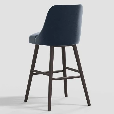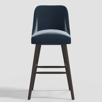 Add opulent charm to your kitchen, dining room or home pub with this Geller Modern Counter-Height Bar Stool in Shiny Velvet from Threshold™. Built on a wooden frame with a black-finished look, this counter stool features a square, armless silhouette with a shiny velvet-upholstered seat and a complementing ergonomic backrest in a solid hue that lets it complement a range of decor styles. Plus, the four tubular, flared legs accompanied by sleek foot rails offer better balance.