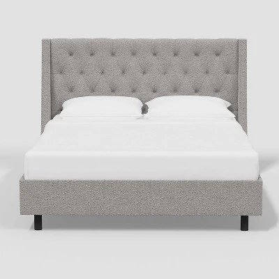 Add a touch of timeless style to your bedroom with this Gilford Wingback Platform Bed in Boucle from Threshold™. Built on a wooden frame, this platform bed is wrapped in textured boucle fabric upholstery in a solid hue for easy incorporation into any decor aesthetic. Featuring a wingback design with a padded button-tufted headboard, this upholstered platform bed brings contemporary style to your sleeping nook.