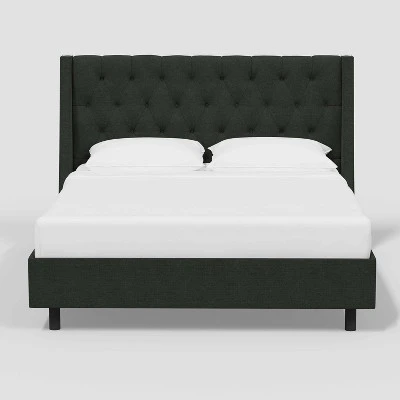 Elevate the look and feel of your bedroom with this Gilford Wingback Platform Bed in Linen from Threshold™. Built on a wooden frame, this platform bed is wrapped in soft linen upholstery in a solid hue for easy incorporation into any decor aesthetic. Featuring a wingback design with a padded button-tufted headboard, this upholstered platform bed brings contemporary style to your sleeping nook.