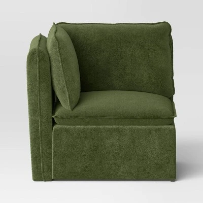 Add a modern look to your living area with the Haven Velvet Modular French Seam Corner Sofa from Threshold™. This dark green corner sofa chair features an arm that makes it great for adding to your sectional sofa. Upholstered in a velvet fabric, this modular sofa chair comes complete with attached cushions for comfy sitting whether you’re alone or hosting guests.