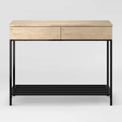 For versatile yet modern style, pick up the Loring Console Table from Threshold™. The two plain-front drawers offer sleek lines and simple style, as well as ample storage to keep your space free of clutter. Place against a wall or use as a sofa table to display your favorite photos, accent pieces and books.