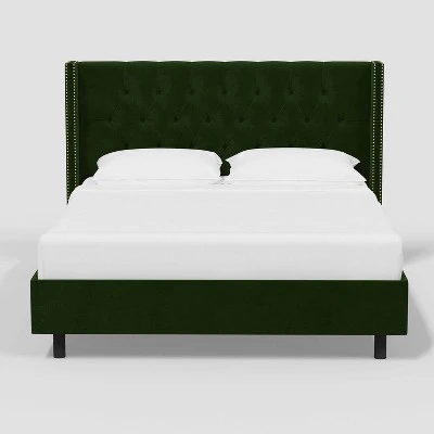 Compose a lavish and stylish bedroom with this Louis Wingback Platform Bed from Threshold™. Made with a solid pine frame, this platform bed features a wingback design headboard with button tufting and nailhead trim that adds elegance to your space. The upholstery is filled with light padding for added comfort and allows you to comfortably lean against the headboard for late-night reading or watching TV, while solid-color design offers easy integration into a variety of decor styles.