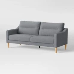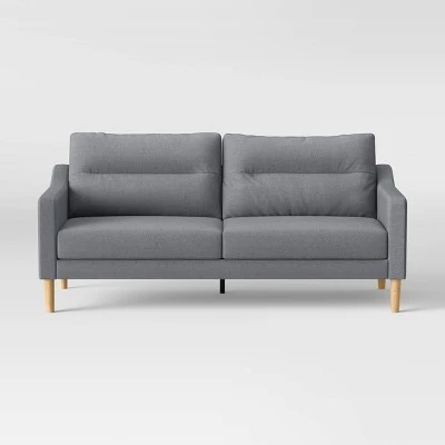 Round out your living room seating arrangement with this Lyndhurst Sofa from Threshold™. Set on natural-looking wooden legs, this sofa features sleek upholstery to add elegant appeal to your living room. Plus, the sofa comes with padded seat and back to provide comfort for you and your guests through long conversations and entertaining. Pair this upholstered sofa with a coordinating armchair or coffee table for an attractive, functional seating arrangement in your living room.