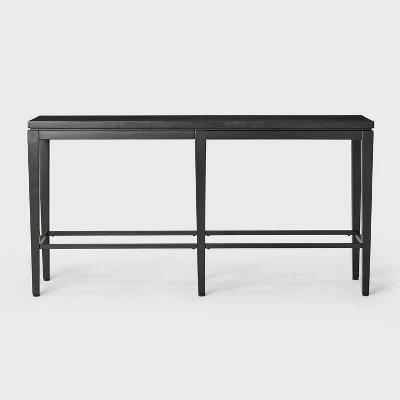 Keep the things handy while enjoying an extra space for displaying decorative items by using the Marvale Console Table from Threshold™ designed with Studio McGee. This tall, rectangular console table stands on six tapered legs for a simple and sleek look. Designed with a black wooden frame, this console table can be kept behind sofa or along an entryway wall.