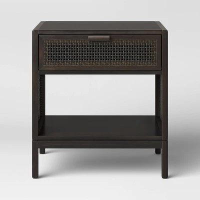 Add functional, chic style to your home with the Minsmere Caned Accent Table with Drawer from Threshold™. Made with wood, this rectangle accent table features a built-in drawer and an open shelf to give you plenty of storage and display options for your books, decorative accents and other items. The caned design of the front of the drawer and along the sides creates a breezy look while adding a hint of beachy, boho style you’ll love. Suitable for a variety of spaces — from living room to home office to any other area of your home, this wooden accent table offers easy integration into a variety of interior decors schemes.