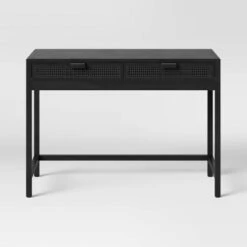 Turn any corner of your home into a stylish work setup with the Minsmere Writing Desk with Drawers from Threshold™. Featuring a simple yet stylish wood frame and two drawers on the front for convenient storage, this light and airy-looking writing desk is great for setting up a dedicated space for reading, writing, studying or catching up on work. The slim design makes for a versatile option whether you have a dedicated office space or just an open wall in your living room, and the caned drawers add a boho-chic look that will complement a variety of furnishings.
