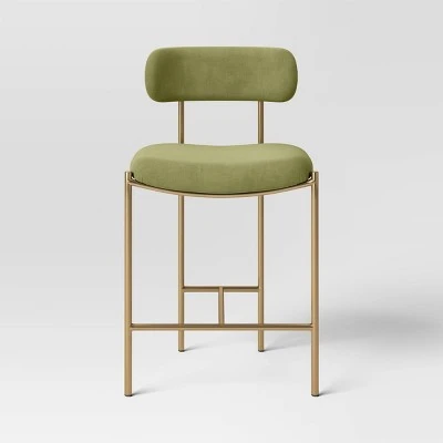 Orion Luxe Backed Counter Height Barstool With Brass Legs Olive Green Velvet – Threshold™