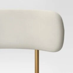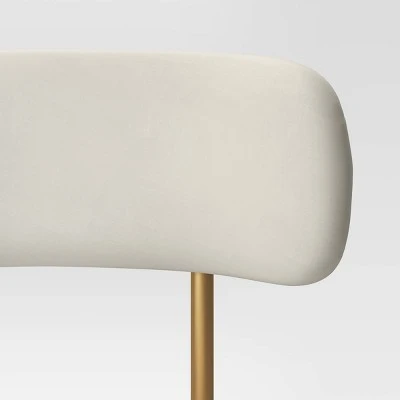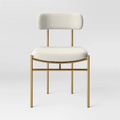 Elevate your dining setup with this Orion Luxe Dining Chair with Brass Legs from Threshold™. This armless dining chair designed with a brass frame and legs adds luxe appeal to your space. Upholstered in creamy gray velvet fabric with a padded seat and curved backrest, it pairs elegantly with any table setting and offers a comfy sitting experience. Plus, the dining chair is also easy to spot or wipe clean.