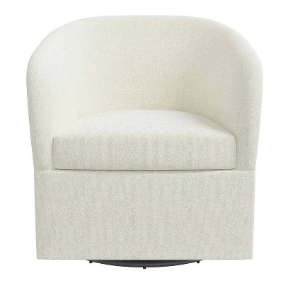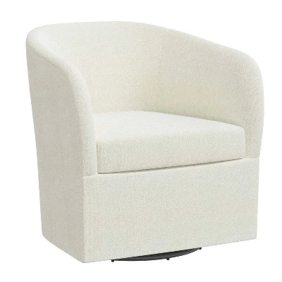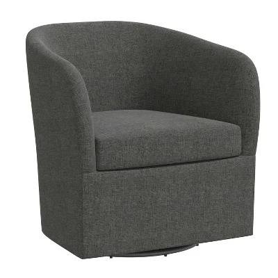 This Rhea Swivel Chair from Threshold™ provides cozy, versatile seating for just about any room in your home. Made with soft upholstery for comfortable seating, this swivel chair is designed in a solid hue for easy pairing with other decor pieces. It can be swiveled in any direction for versatile use, and it looks great placed next to your couch or by a window with a view. This swivel chair requires no assembly, and it comes with a one-year limited warranty.