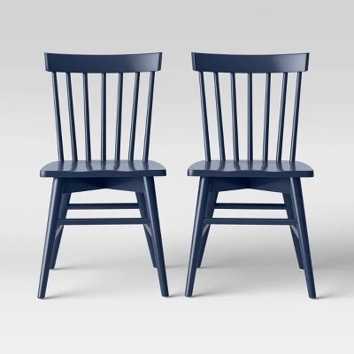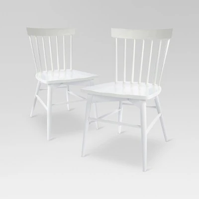 Dine in style with the Set of 2 Windsor Dining Chairs from Threshold™. These classic wooden chairs are great for everyday meals and casual entertaining. They have a comfortable pitch and sturdy wood construction with a high fan back and a shallow saddle seat to keep the whole family comfy — a smart and stylish addition to your home furniture collection.