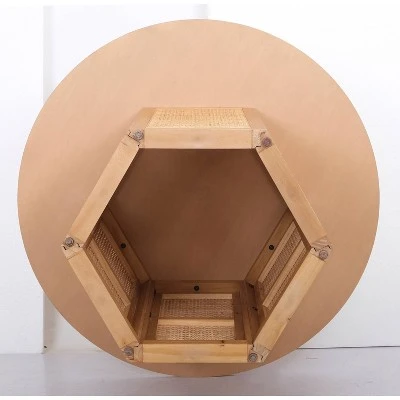 Upgrade your dining space with the Tormod Round Dining Table from Threshold™. This brown dining table features a round tabletop and a hexagonal base with allover caned design for an attractive look. Designed with a wooden frame, this round dining table complements your existing decor well — simply add coordinating chairs and dine in elegance.