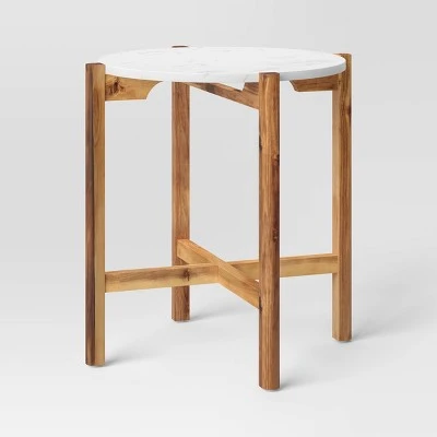 Wood And Marble Accent Table Natural – Threshold™